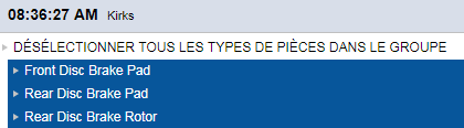 Pour chercher toutes les pièces d’une recherche précédente, cliquez sur le lien « Choisir tous les Types de pièce dans le groupe » Tous les types de pièce seront ajoutés à la barre « Mes pièces choisies ».