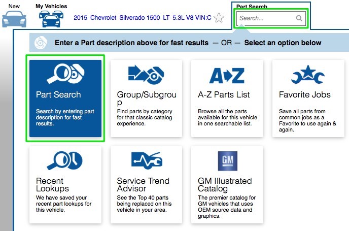 Find parts faster by utilizing the power of Part Search. When a vehicle is defined use Part Search by simply entering the description of the part you are looking for. Enter partial names or even synonyms and find your parts.