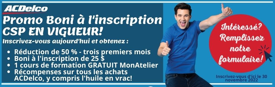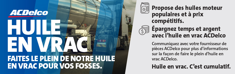 Saviez-vous qu'ACDelco offre plus que de l'huile conditionnée? Obtenez de l'huile en vrac ACDelco pour vos aires de service à un prix concurrentiel! Notre programme d'huiles en vrac ACDelco vous permet d'être prêt pour une saison d'entretien d'automne chargée. Gagnez du temps, économisez de l'argent et réduisez vos quantités d'emballage et de déchets en achetant en vrac. Plus d'une douzaine d'offres en vrac. Faites le plein aujourd’hui! Notre offre d'huile est conditionnée et en vrac pour les installations de réparation et pour toutes les marques et tous les modèles, y compris les huiles suivants : 0W-20, 0W-30, 0W-40, 5W-20, 5W-30, 10W-30, 0W-40,5W-40 et 15W-40. De plus, ACDelco offre dexos1™ Gen 3, la plus récente spécification d'huile moteur pour voitures introduite par GM, une huile moteur entièrement synthétique et disponible dans les grades suivants : 5W-30 et 0W-20. Avec notre liste d'huiles moteur à prix compétitifs, la livraison nationale et plus encore, notre programme d'huile en vrac rend votre approvisionnement en huile sans souci. ACDelco offre des huiles conventionnelles, des mélanges synthétiques et des huiles dexos® 1 entièrement synthétiques. Nos huiles entièrement synthétiques sont des huiles entièrement synthétiques formulées à partir d'huiles de base et d'additifs pour lutter contre l'oxydation et les boues afin de garder les moteurs propres et de les protéger contre l'usure par corrosion et les dépôts. Comment commander de l'huile en vrac? Contactez un fournisseur ACDelco dans votre région. Ils peuvent discuter des prix actuels et vous ouvrir un compte de l'huile en vrac. Rejoignez notre programme CSP ACDelco dès aujourd'hui et gagnez des récompenses sur vos achats d'huile en vrac! Promotion d'inscription en cours jusqu'au 30 novembre 2022. Demandez tous les détails à votre fournisseur ACDelco! Des questions? Communiquez avec l’Info-Ligne d'ACDelco au 1 800 263-3526. |